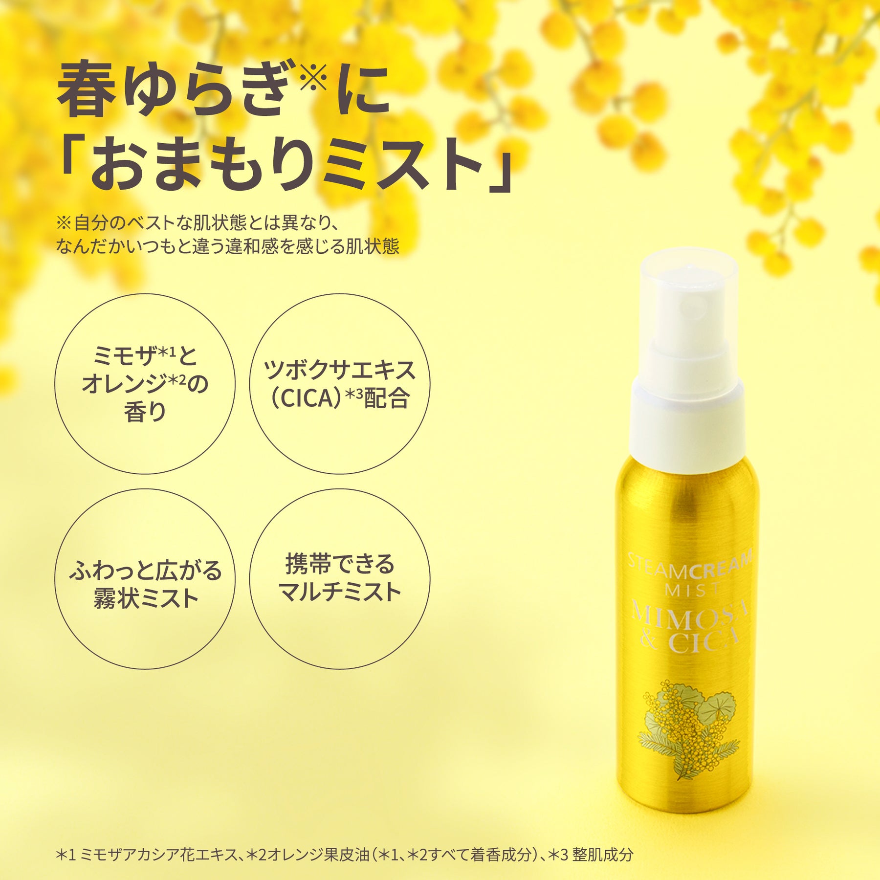 ミモザ*1とオレンジ*2のフレッシュで華々しい香りがこころと肌に幸福感を運びます。開発に5年もの歳月をかけて創り上げたこのミモザ*1の香りは、9種の精油を絶妙なバランスで調香し、春の訪れを告げるミモザの花の美しさを表現しました。