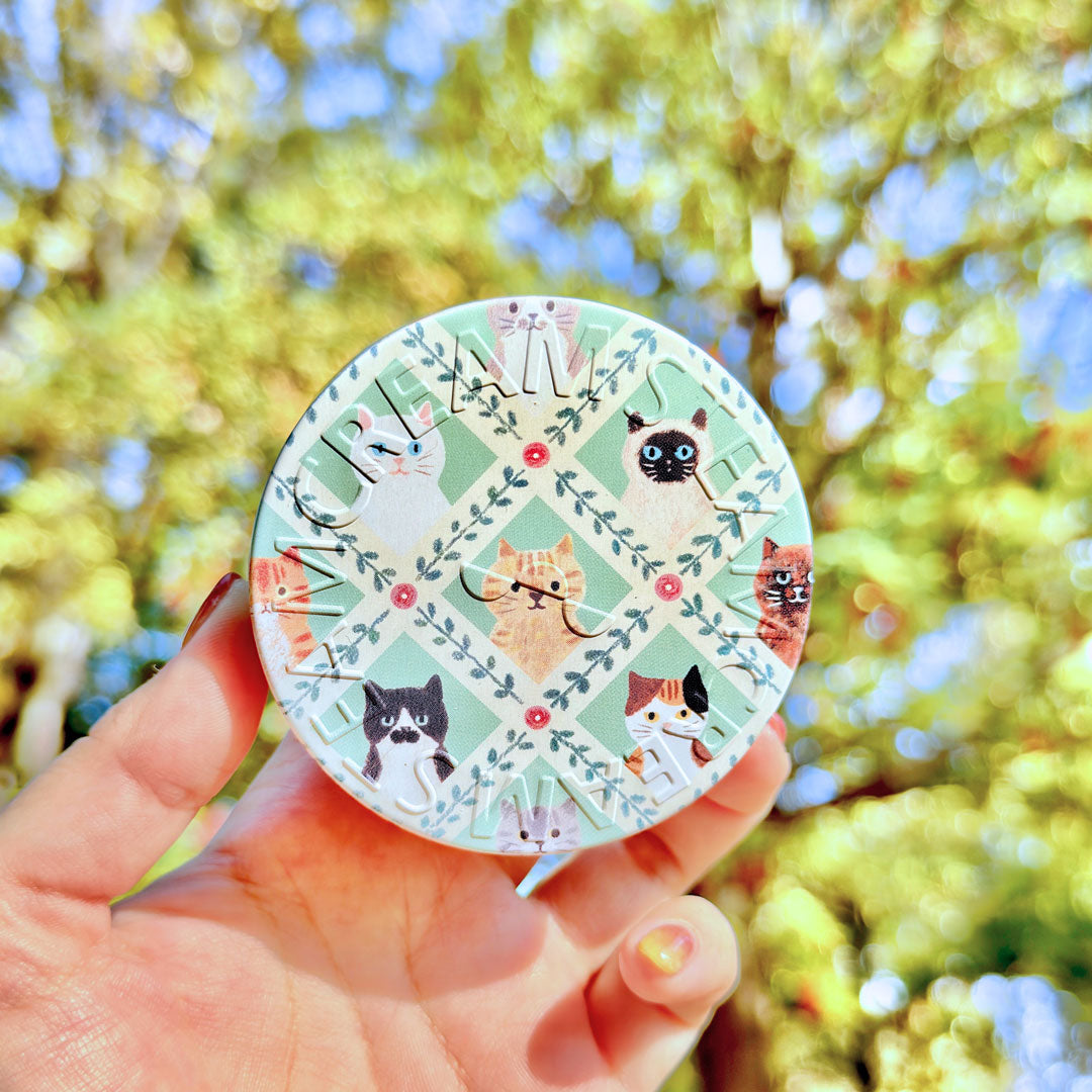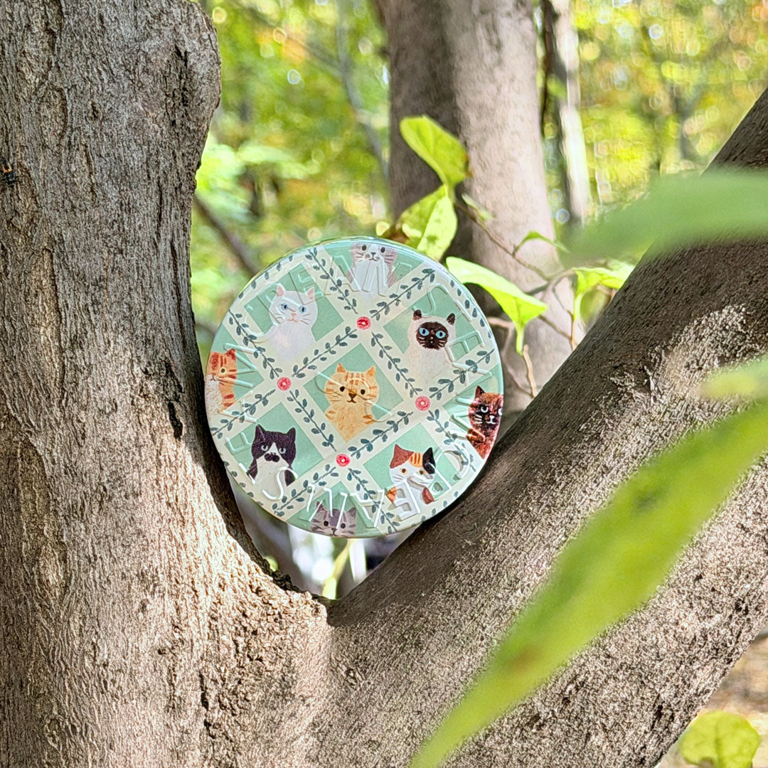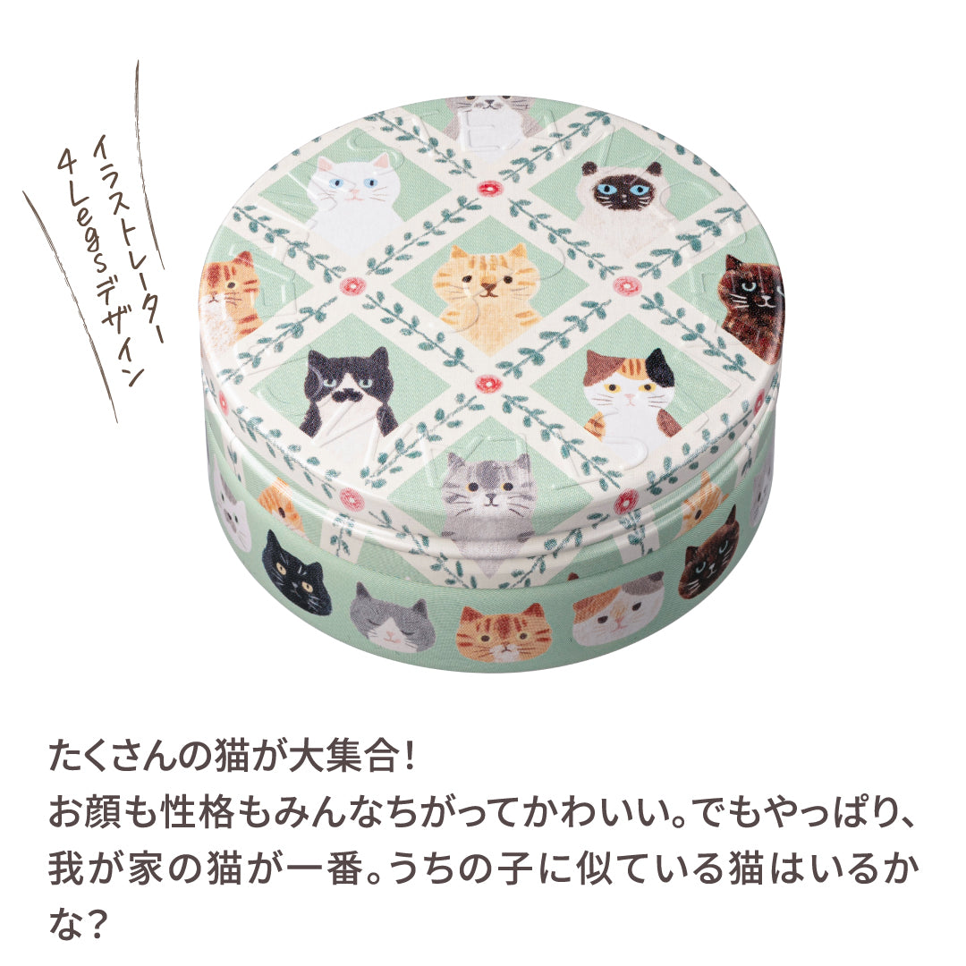 • 9人の猫のお顔が勢ぞろいしたデザインです。猫好きにはたまらない、きっと「うちの子」に似ている子が見つかるはず。