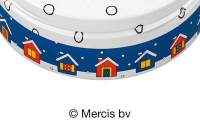 側面にも描かれているお家のブルーナカラーが、背景の青に映えてあたたかさも感じます。