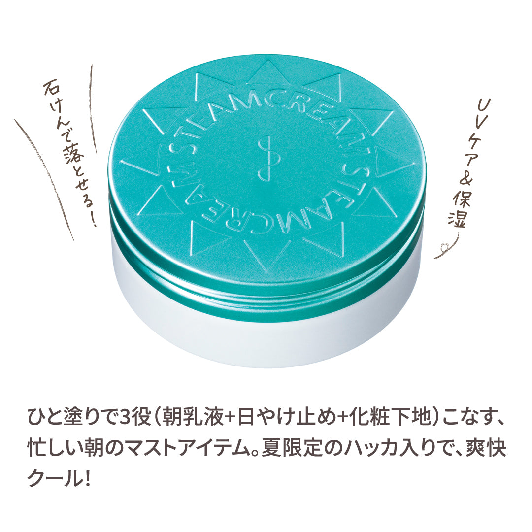 夏限定のUVクリームを、スチームクリームの定番スタイルの缶タイプと、