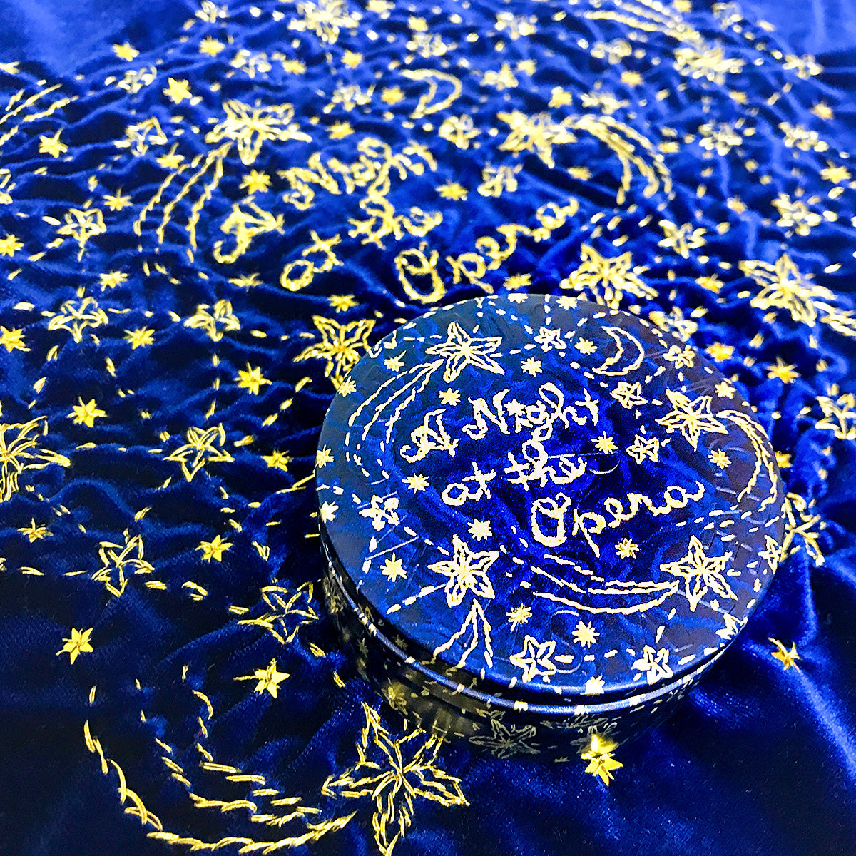 吉川まこさんが描く2つのデザインは、夢見るような白とゴールドの光、そして深い宇宙の静けさを表現しています。どちらも傾けるたびにゴールドの刺繍がきらめき、まるで星が瞬くような美しさです。