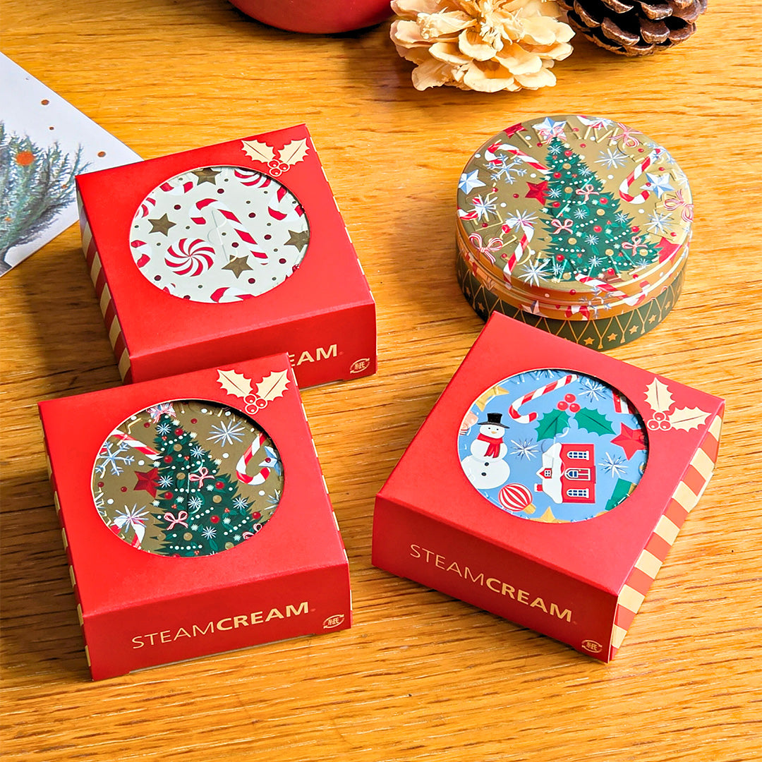 ギフトボックスにスチームクリーム(75g)を入れ、 フタをして閉じるだけの簡単ラッピングです。